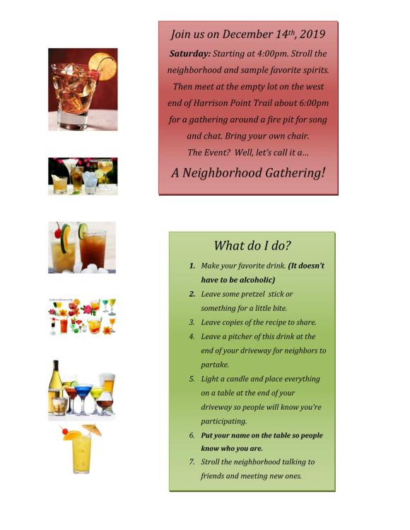 Categories Uncategorized A Neighborhood Gathering – December 14, 2019 Post author By rbarber2014 Post date November 10, 2019 No Comments on A Neighborhood Gathering – December 14, 2019 Share this: Share on X (Opens in new window) X Share on Facebook (Opens in new window) Facebook Like Loading... ← Reminder: Annual Meeting is November 10, at 4pm → Recycling Guidelines from Advanced Disposal Leave a Comment Cancel reply Δ