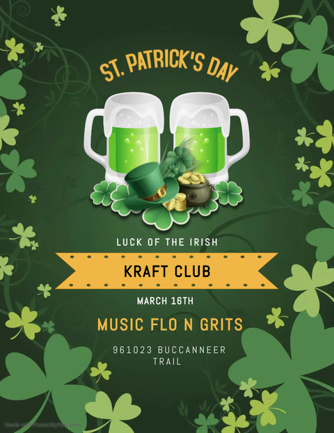 Get your green on and come to the Kraft Athletic Club”s annual party – live band, bag pipes, and food truck.